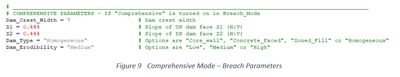Comprehensive mode uses the dam characteristics in the command file to look up the dam with the closest match in (Azmi and Thomson, 2024). The focus of this lookup is predominantly height of breach (hb) and volume of water (Vw). It’s recommended to sensitivity test this lookup by changing inputs like Dam_Type and Dam_Erodibility to see if others match.